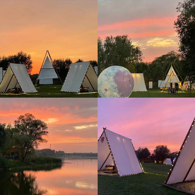將現狀高爾夫練習場草坪區域改造成帳篷營地,供游客進行露營、觀星、野餐、篝火晚會等活動,區塊劃分帳篷搭建位,規范游客合理安排帳篷位置。設置露營野餐的服務點,提供售賣零食飲料和帳篷出租的服務。